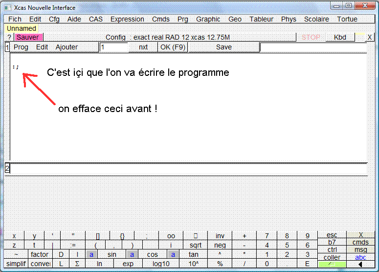 1.ouvrir le programme Xcas. ( qui est à intaller éventuellement)